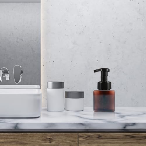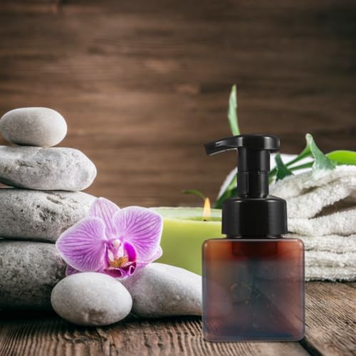 - زجاجة مربعة -- ❤️【سعة كبيرة】: 13.5 × 6.5 سم، يمكنها حمل 250 مل من محلول الصابون الرغوي. التصميم: يوجد مشبك أمان بلاستيكي بين الجزء العلوي من المضخة والجزء العلوي من البرغي البلاستيكي للتثبيت، يمكنك إزالته، ويتحرك المكبس الموجود على المضخة بحرية.