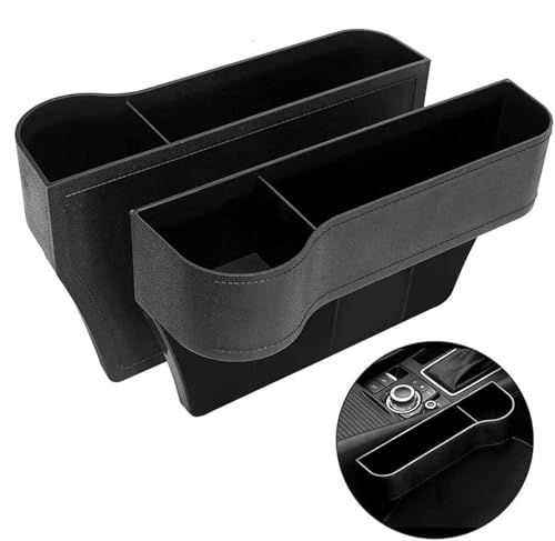 None Branded - علبة تخزين بين فراغات مقعد السيارة، حامل اكواب متعدد الوظائف، منظم لسد الفراغات بين مقعد السيارة من جلد صناعي فاخر بجيوب جانبية لمسند ذراع السيارة، قطعتان