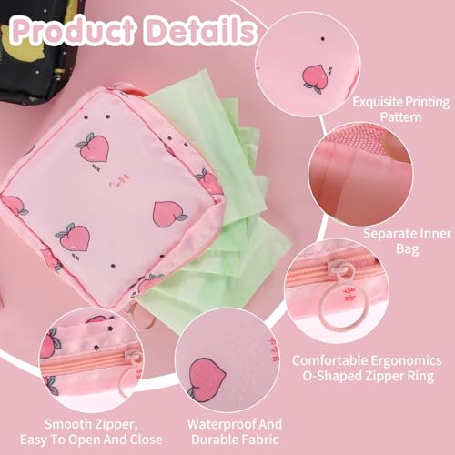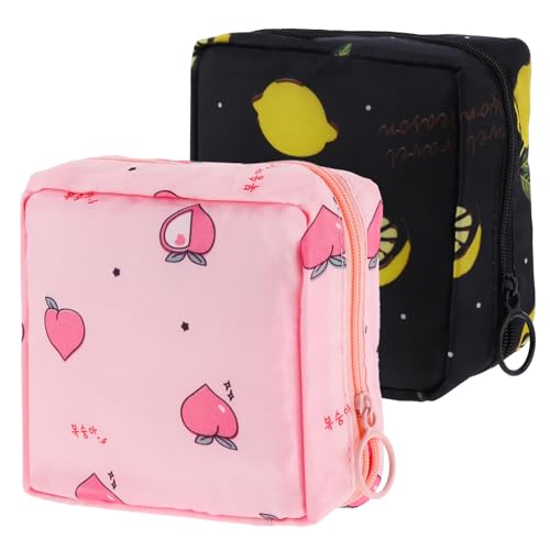 Anheyu - شنطة تخزين الفوط الصحية بتصميم لطيف محمول مقاوم للماء بسوستة لحمل السدادات القطنية للنساء والفتيات المراهقات في المدرسة من قطعتين