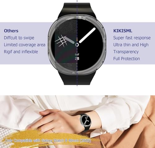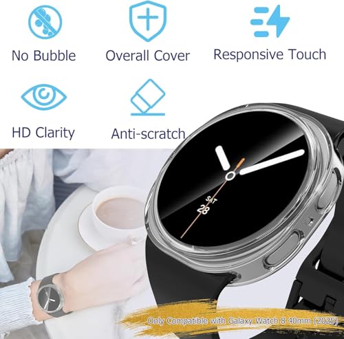 - ⌚قطعتان من واقيات الشاشة المتوافقة مع ساعة سامسونج جالاكسي 8 40 ملم (2025)⌚ توفر هذه الحافظات المزودة بواقيات شاشة مدمجة شاشة أفضل وسطح خارجي وأربعة جوانب حماية لساعتك.