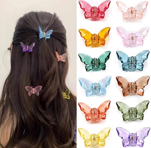 Generic - إكسسوارات شعر صغيرة ملونة على شكل فراشات شفافة ومشابك شعر صغيرة للبنات، من قطعتين