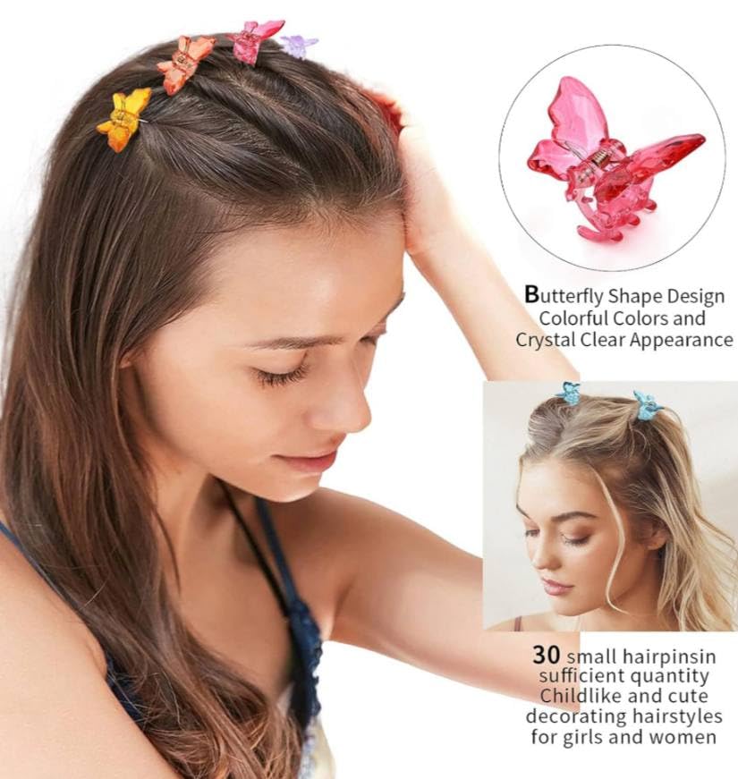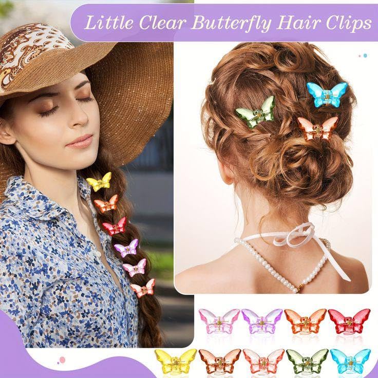 - مجموعة دبابيس شعر صغيرة ملونة على شكل فراشات شفافة مكونة من قطعتين.