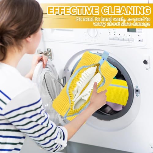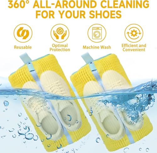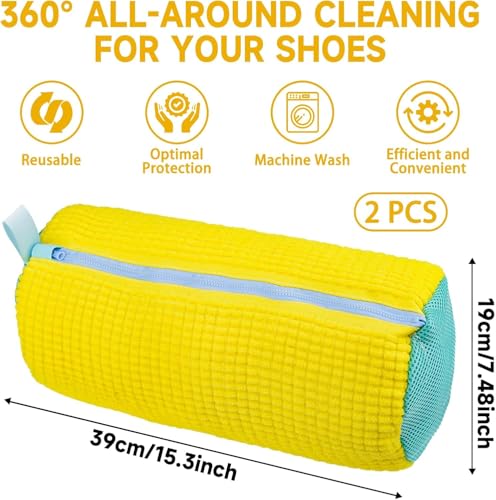 Hoxxu - شنطة أحذية للغسالة، شنطة غسيل شبكية قابلة لإعادة الاستخدام مع سوستة للأحذية، شنطة غسيل متينة للغسالة والمجفف، مجموعة تنظيف الأحذية الرياضية، تحمي الأحذية البيضاء 360 درجة، قطعتين