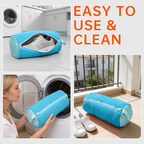 SUOSEC - اكياس غسيل الاحذية من بي جي اس من قطعتين للغسالة والمجفف، قابلة لاعادة الاستخدام ومتينة بسوستة لتنظيف الاحذية الرياضية لجميع انواع الاحذية (ازرق)