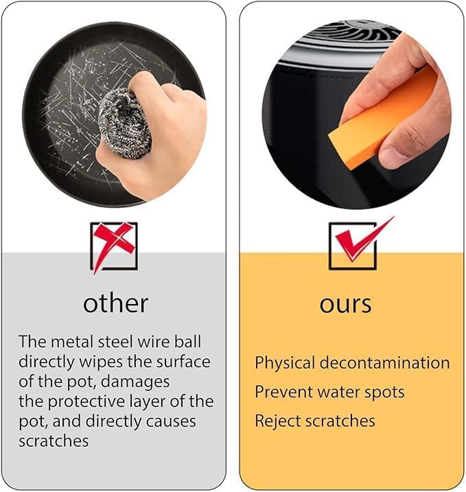- 【لا تسبب الخدوش】تقوم منتجات التنظيف العامة بمسح سطح هيكل الوعاء مباشرة، مما يتسبب في حدوث خدوش مباشرة، بينما تستخدم مناديل إزالة البقع المادية لحماية الطبقة الواقية من هيكل الوعاء ومنع الخدوش.
