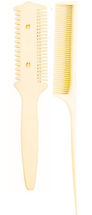 - مشط قص الشعر: متعدد الاستخدامات، يعمل بشكل رائع على الشعر المستعار أيضًا. مقص قص الشعر ذو الجانبين.