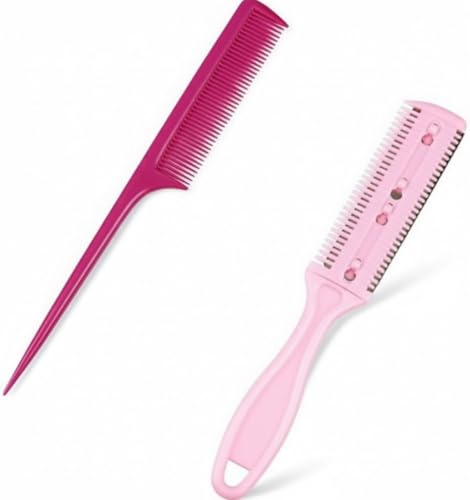 Generic - مشط تصفيف من ألياف بطرف مدبب للتسريح والرفع + مشط لتصفيف الشعر ومقص شعر، أداة تشكيل لقص وتخفيف الشعر، عبوة من قطعتين
