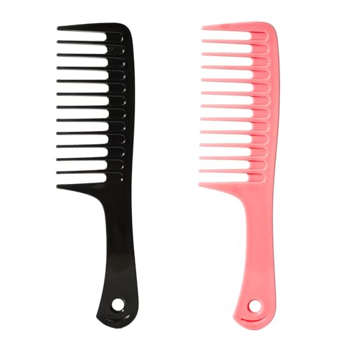 Fgail - مشط واسع الأسنان للشعر المجعد، مشط فك تشابك بأسنان كبيرة للشعر المجعد المبلل والجاف، مشط واسع للنساء والرجال، طقم من قطعتين (أسود - برتقالي)