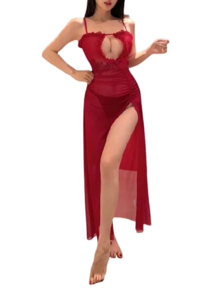 Generic - لانجيري سكسي شفاف من قطعتين بتصميم جذاب مفتوح من الجانب، قميص نوم أنيق للنساء