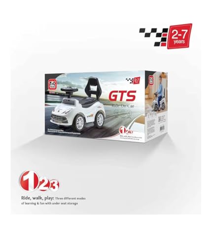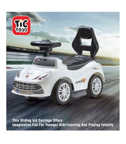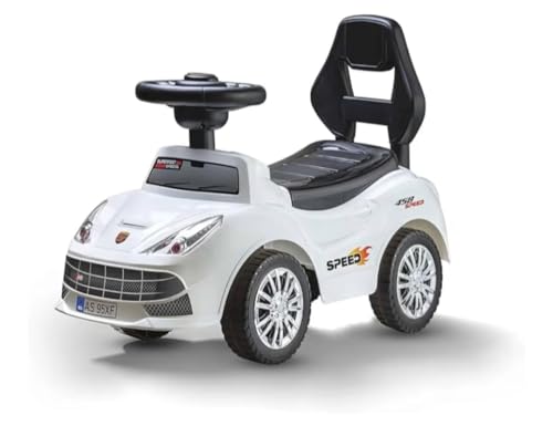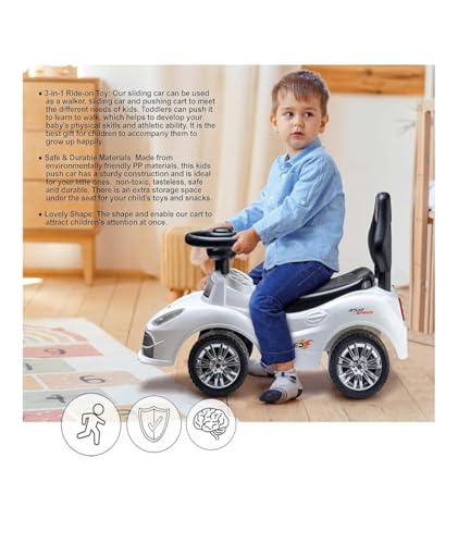 Generic - لعبة سيارة دفع منزلقة 3 في 1 للأطفال الصغار مع مسند ظهر وعجلة قيادة ومساحة تخزين للاطفال من سن 1-4سنوات، لون أبيض