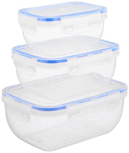 bager - طقم ثلاجه مستطيل بلاستيك شفاف بغطاء جوان 3 قطع 1400 ملى 800 400 ملى- * ازرق