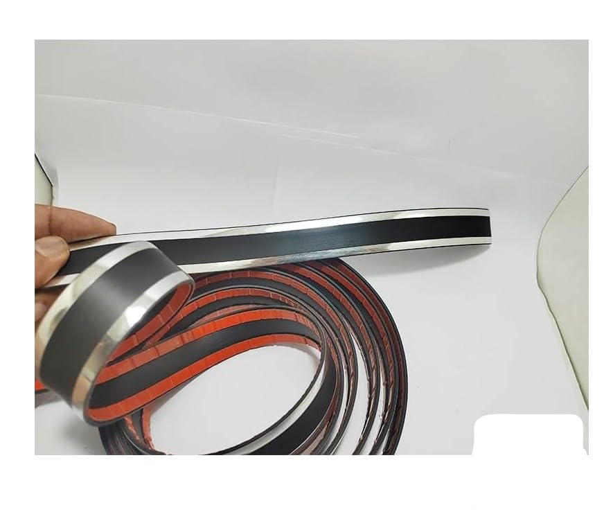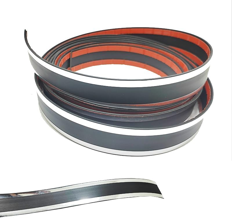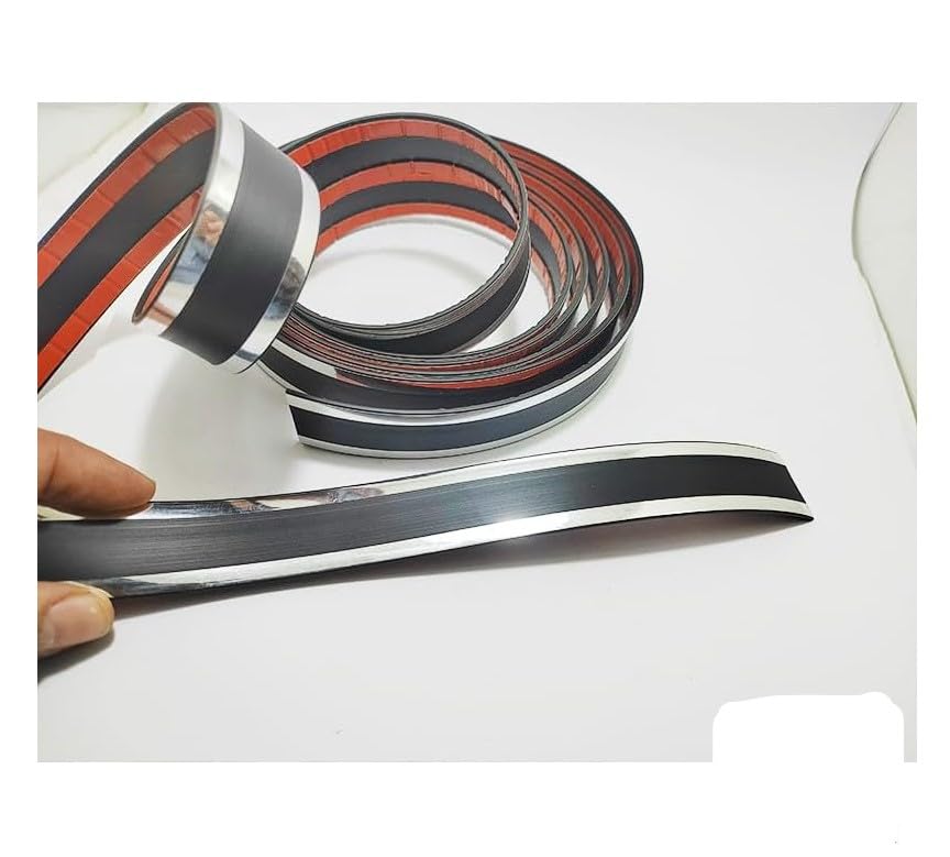 Generic - شريط لاصق فضي من الكروم ديكور وتزيين السيارة الداخل والخارج وايضا يستخدم فى المنازل والمكاتب متعدد الاستخدامات-(لون اسود بخطين فضى ، طول 3 متر فى عرض 2.7 سم) نسمه ستور