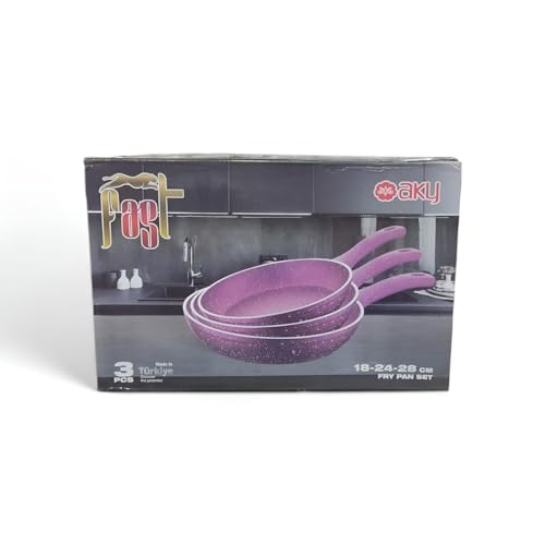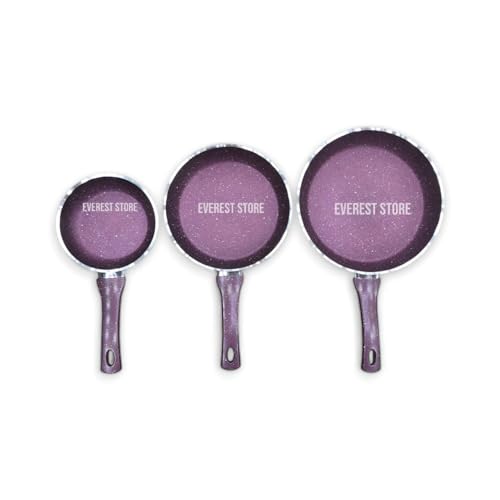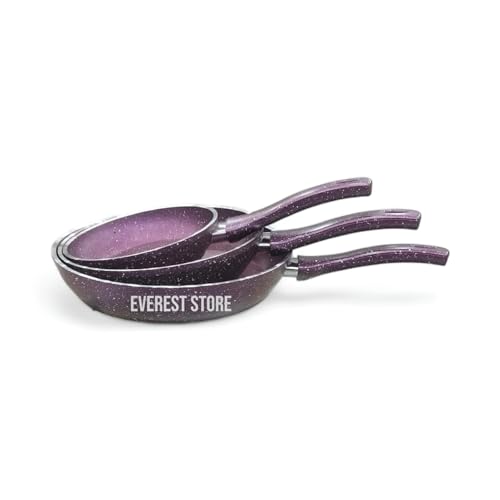 Generic - طقم طاسات جرانيت تركي بحواف استانلس ٣ مقاسات ( ٢٨ - ٢٤ - ١٨ )، بنفسجي