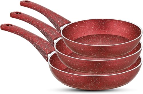Generic - طاسات جرانيت طقم من 3 قطع مقاس 28 و24 و20، لون أحمر