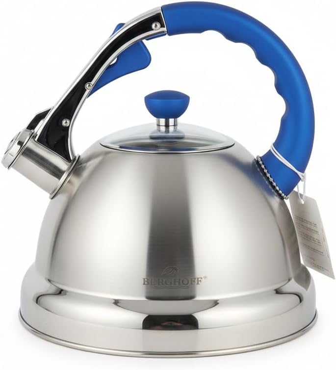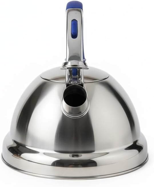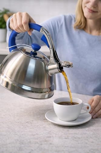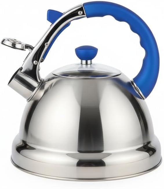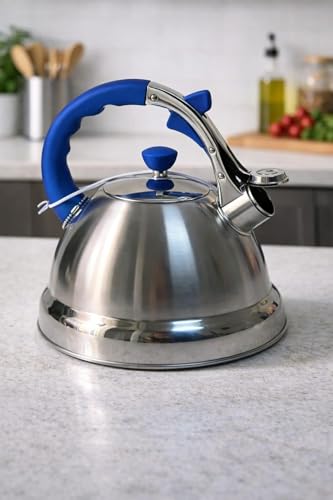 Generic - غلاية شاي من الستانلس ستيل بسعة 3.2 لتر بمقبض احمر - ابريق شاي بصفير عالي، غلاية تسخين سريعة للموقد الغاز والحث الكهربائي (ازرق)