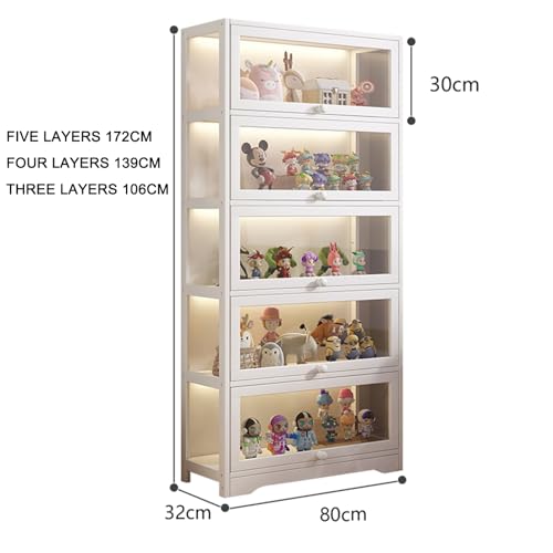 HARELA - خزانة عرض متعددة الطبقات 3/4/5، مع أبواب أكريليك، مناسبة كصناديق لعرض المقتنيات وكرف للكتب وخزانة كتب لغرفة اللعب أو غرفة النوم وحافظة لعرض الجوائز (المقاس: 1.6 م× 30 سم × 60 سم).