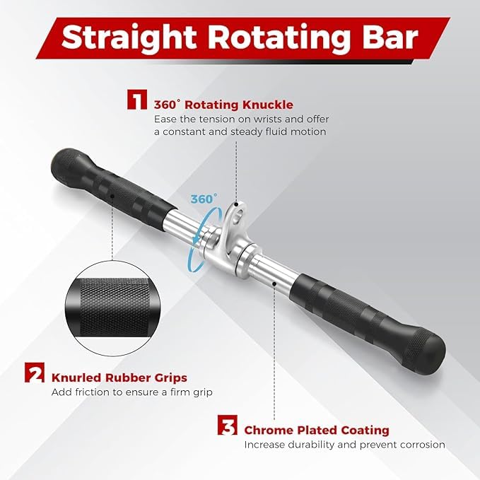 - 【قبضة مريحة وغير قابلة للانزلاق】تم تصميم المقبض على شكل حرف V ومقبض مزدوج على شكل حرف D وقضيب دوار مستقيم بمقابض من المطاط الحراري المرن المخرش لإضافة الاحتكاك لضمان قبضة محكمة. بالإضافة إلى ذلك، يمكن للمفصل الدوار 360 درجة تخفيف التوتر على المعصم وتوفير حركة سائلة ثابتة وثابتة.