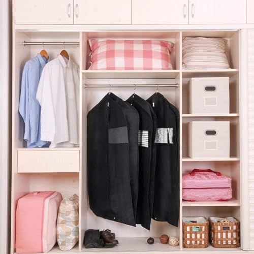 - يساعدك هذا الغطاء العملي للملابس على تنظيم خزانة ملابسك بطريقة مرتبة، حيث يمكنك فصل البدلات أو القمصان الخاصة بالمناسبات عن باقي الملابس اليومية. يسهل هذا التنظيم العثور على الملابس بسرعة ويوفر مساحة داخل الخزانة. كما أن وجود ثلاث أكياس في العبوة يمنحك مرونة أكبر في ترتيب الملابس المختلفة مثل البدلات أو الجاكيتات أو المعاطف.