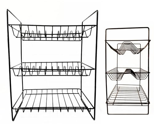 • مطبقية الاطباق ورف التجفيف المصنوع من اجود المعادن المطلية بالكهرباء ذات الجودة العالية 3 رفوف متعددة الاستخدامات