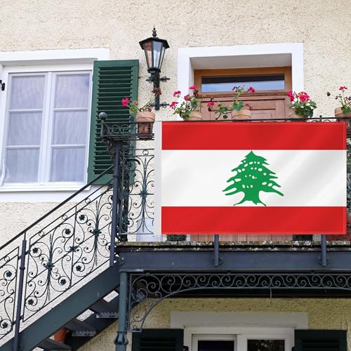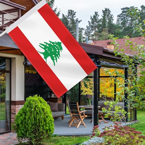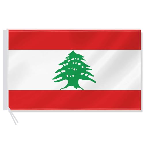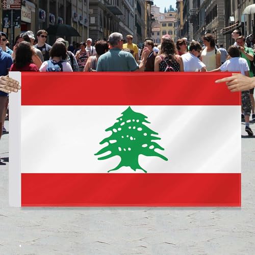 RaymNord - علم لبنان 3 × 5 قدم، ديكور وطني لبناني كبير، لافتة بوليستر 75D مطبوعة رقمية مزدوجة الجانب مع خيط راس من القماش