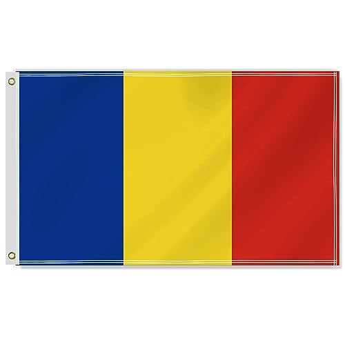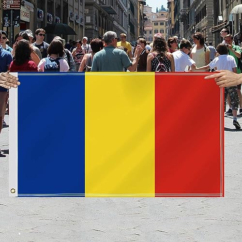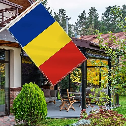 RaymNord - علم الامة الرومانية مقاس 3×5 قدم، ديكور روماني كبير، لافتة من البوليستر 150D بطباعة رقمية مزدوجة الجانب مع راس قماش وحلقة نحاسية للسيارة الخارجية والداخلية