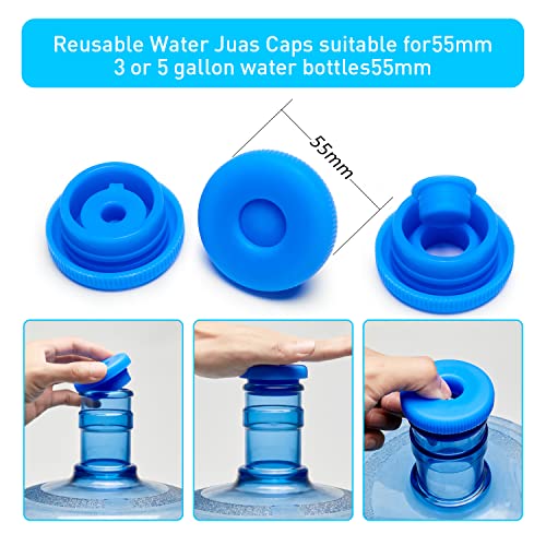 Generic - غطاء إبريق مياه 3 و5 جالون قابل لإعادة الاستخدام - أغطية زجاجات المياه تناسب زجاجات 55 ملم، أغطية سيليكون مانعة للانسكاب لمكافحة الرذاذ (6 قطع)
