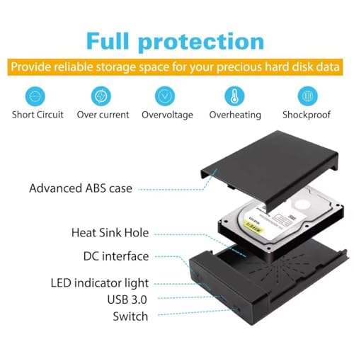 - مزودة بشريحة تعريف عالية الأداء JMS578. يمكن لعلبة القرص الصلب الخارجية ساتا 3.0 إلى 3.5 بوصة توصيل أي قرص صلب ايه تي ايه تسلسلي (ساتا) 3.5 بوصة بجهاز الكمبيوتر الخاص بك من خلال منفذ USB 3.0 على سطح المكتب أو اللاب توب. الاستفادة الكاملة من سرعة USB 3.0 لنقل الملفات بسرعة تصل إلى 5 جيجابت في الثانية، هذه الحافظة هي الحل الأمثل لنقل البيانات أو نسخ احتياطي للبيانات.