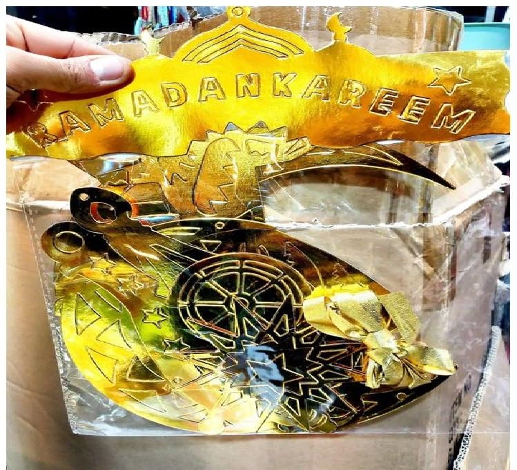 - فرع زينة رمضان بلون جولد أنيق يضيف لمسة فخامة للمكان طول مناسب حوالي 3 متر ونص تقريبًا لتغطية مساحة كبيرة