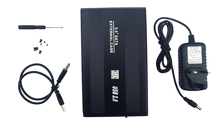 Generic - حافظة خارجية ساتا 3.5 انش، USB 2.0، اسود، حاوية قرص صلب من الالومنيوم