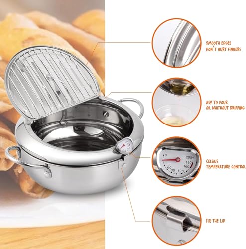 - ✅【متانة خارقة】مصنوع من استانلس ستيل عالي الجودة مع سمك متوازن يمنح ثباتًا قويًا عند القلي والتحمير المتكرر، مما يحافظ على شكل الوعاء ويضمن أداءً مستدامًا لسنوات عديدة، مع مقاومة طبيعية للتآكل والصدأ لتوفير أداة مطبخ موثوقة وطويلة العمر تقلل الحاجة لتغيير المعدات باستمرار وتضمن تجربة طهي منظمة ومريحة. 🍳