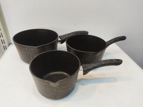 Generic - طقم أوعية تسخين الحليب والسوائل 3 قطع – مقاسات متعددة لتحضير وتسخين المشروبات والسوائل بسهولة AR (اسود, 16سم)