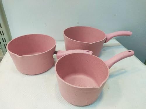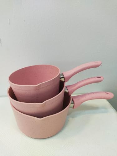 Generic - طقم أوعية تسخين الحليب والسوائل 3 قطع – مقاسات متعددة لتحضير وتسخين المشروبات والسوائل بسهولة AR (بينك, 16سم)