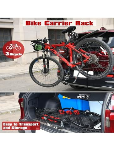 Generic - حامل دراجات للسيارة يتسع لـ 3 دراجات، قابل للطي، أسود وأحمر، حديد متين، 73x50x70 سم، 45 كجم سعة تحميل