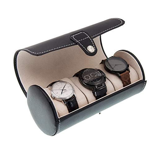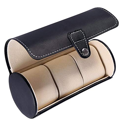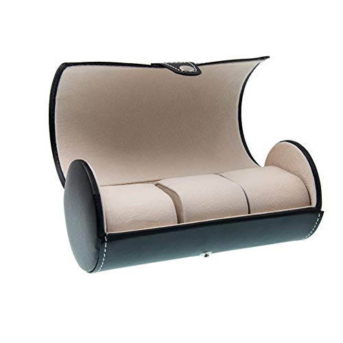Rubik - صندوق ساعة اسطواني 3 بت من البولي يوريثين عالي الجودة يمكن وضع المجوهرات (اسود)، من روبيك، جلد