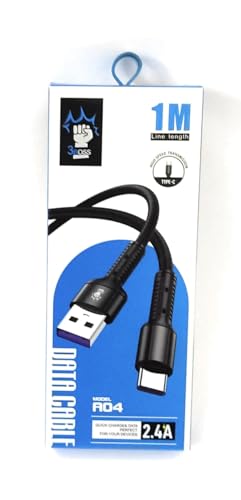 Generic - كابل بيانات 3 بوس USB نوع سي بشحن سريع بقوة 2.4 أمبير وطول 1 متر ومغطى بالنايلون