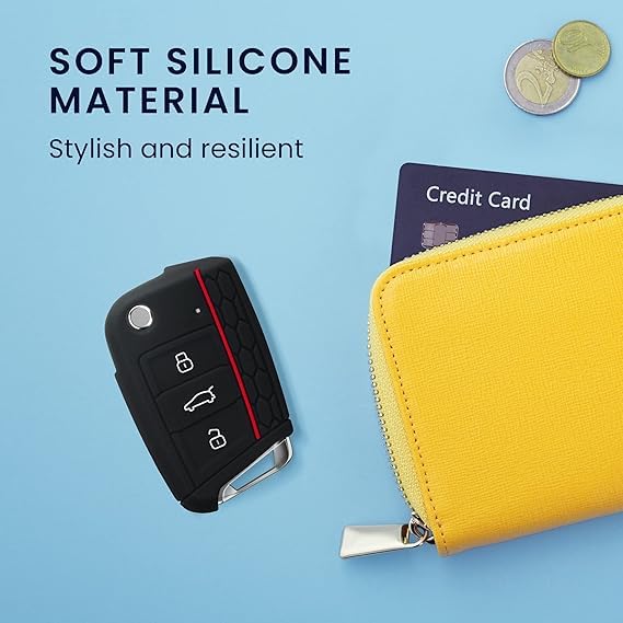 Generic - غطاء مفتاح فوب من السيليكون بـ3 ازرار - حافظة واقية لسيارة فولكس فاجن جولف 7 MK7 وبولو وجيتا وتوران وتيجوان وسيات ليون وايبيزا وسكودا اوكتافيا وسوبيرب وكودياك (اسود)