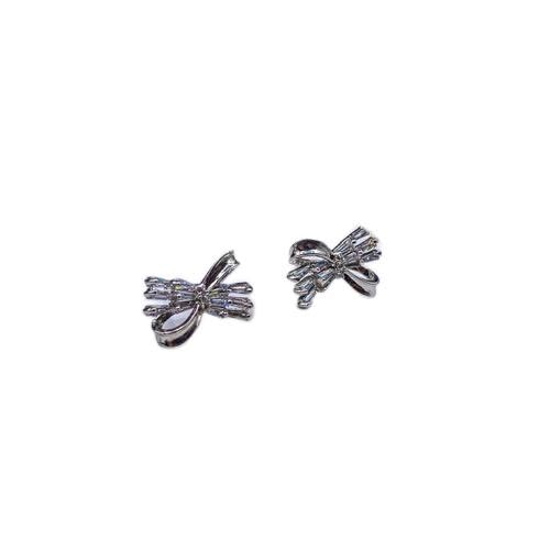 3 Diamonds - اقراط مطلية بالبلاتينيوم والروديوم على شكل فيونكة مرصعة باحجار الزركون من 3 دايموندز 292474661779266