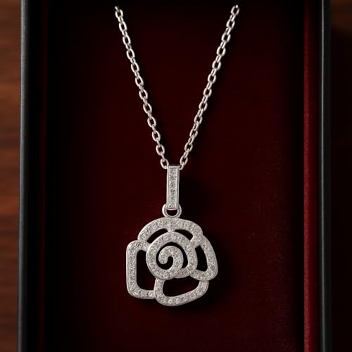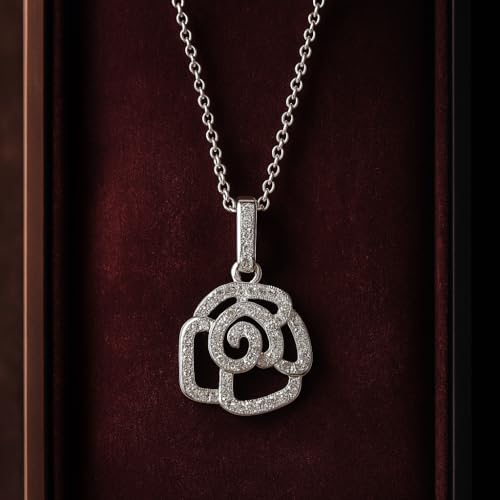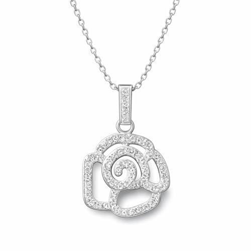3 Diamonds - عقد 337015953936669 من البلاتين والروديوم روز للنساء من 3 دايموندز - مجوهرات بدلاية على شكل زهرة مفتوحة من الزركون