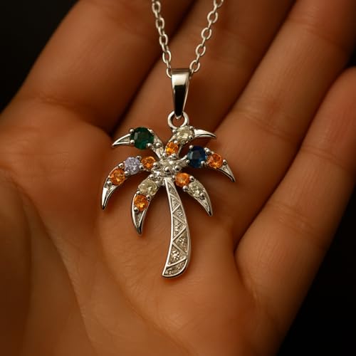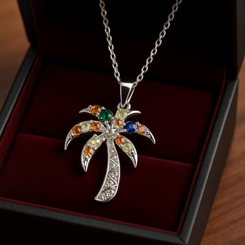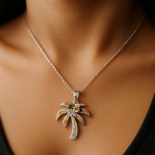 3 Diamonds - عقد بقلادة كريستال على شكل شجرة نخيل استوائية للنساء من 3 دايموندز 337015953936679 - لمسة نهائية من الروديوم البلاتيني