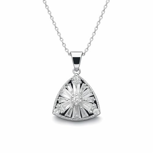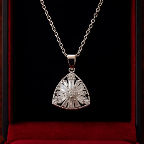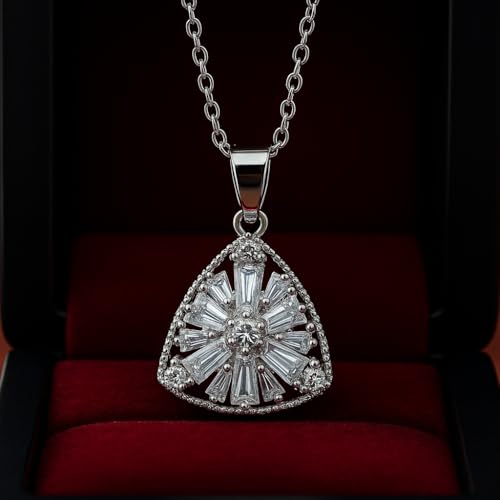 3 Diamonds - عقد بقلادة مثلثة مطلية بالبلاتين والروديوم مع زركون لامع من ثري دايموندز 337015953936729