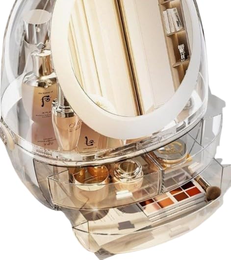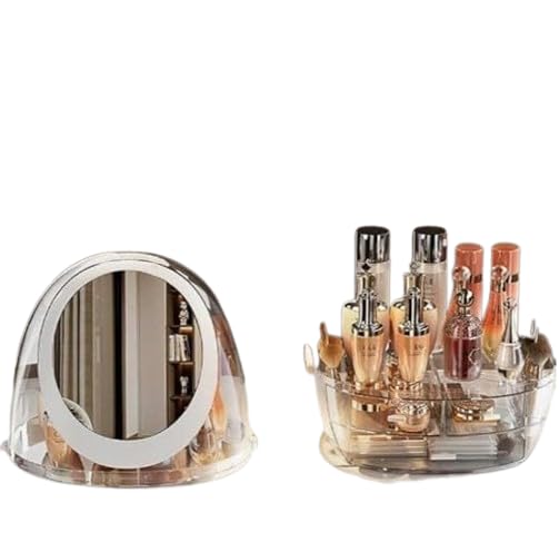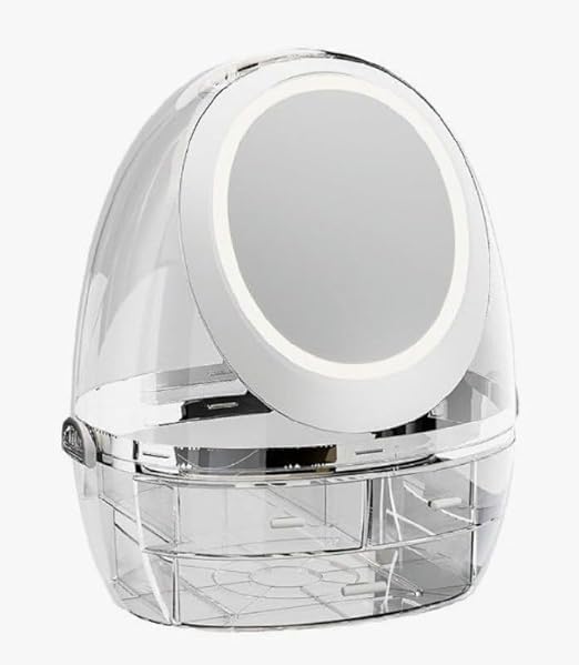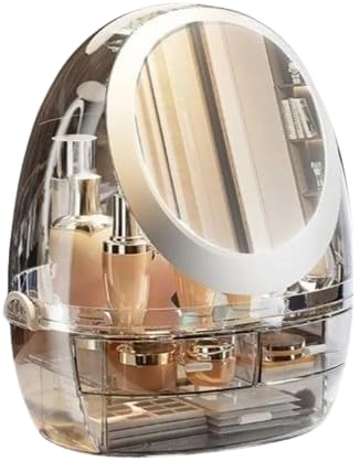 Generic - منظم اكسسورات ومكياج مقاوم للغبار شفاف مكون من 3 أدراج بفواصل ذكية لتنظيم القلائد والحلقان والأكسسوارات للعناية مزود بمراة باضاءة حل تخزين مجوهرات أنيق ومثالى