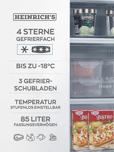 Heinrich´s - فريزر وفريزر من هاينريشز 3 × ادراج تحكم مستمر في درجة الحرارة تدفق الهواء سدادة باب قابلة للاستبدال سعة صافية 85 لتر الحرارة: -18 مئوية ~-38 ابيض [فئة الطاقة E]