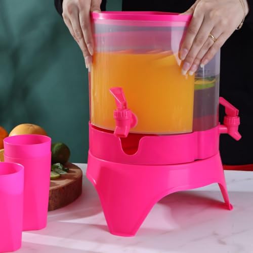 - 3 عيون منفصلة لتقديم 3 أنواع مختلفة من العصائر. اجمالي السعة 4.5 لتر مناسب للعائلة والضيوف. تصميم دوّار 360 درجة يسهل الوصول لكل خانة. بلاستيك صحي وآمن للمشروبات الباردة. مناسب للاستخدام داخل الثلاجة وخارجها. يأتي مع: كرسي تثبيت + 3 أكواب + مفرش هدية. سهل الفك والتركيب والتنظيف. شكل فخم يناسب سفرة رمضان وركن الضيافة.