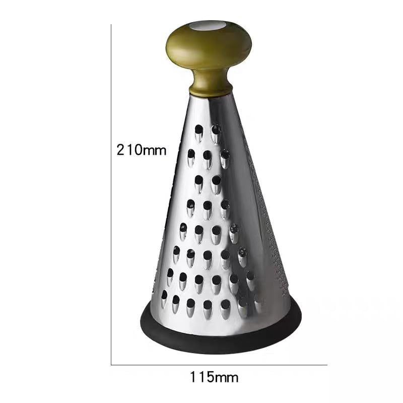 - تصميم مبتكر بشكل مخروطي ثلاثي الوجوه يتيح أداءً فعالًا لتقطيع وبشر الخضروات والجبنة.