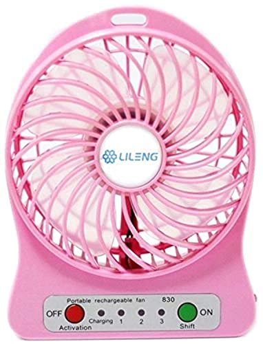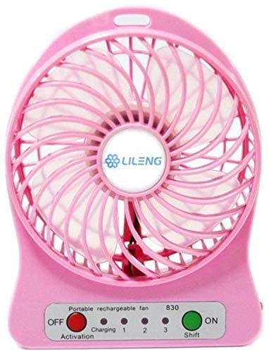 Other - مروحة صغيرة محمولة تعمل ببطارية ليثيوم ايون قابلة لاعادة الشحن مزودة بمنفذ يو اس بي وشفرات تشبه اوراق النخيل و3 سرعات، لون زهري، عدد المنافذ: 4، 4.5 واط