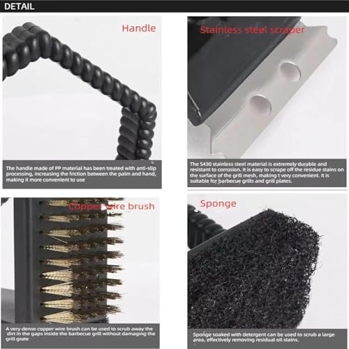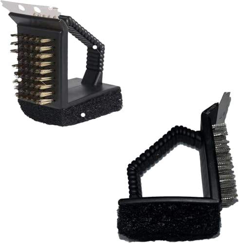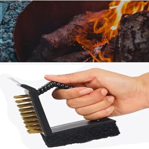 Generic - فرشاة شواء 3 في 1 بشعيرات معدنية، مكشطة ومقشرة، لون اسود