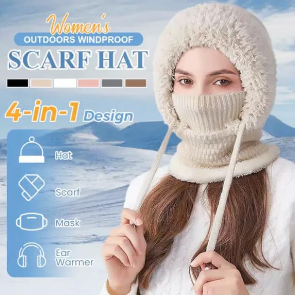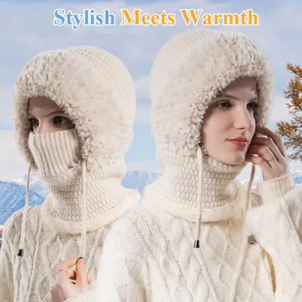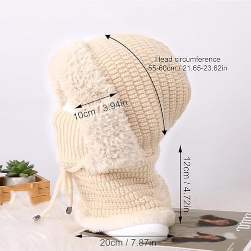 CeKaphely - قبعة صغيرة 3 في 1 مع وشاح وقناع، قبعة صغيرة محبوكة للنساء مبطنة بالصوف ووشاح شتوي وقناع، مجموعة قبعات ثلج هدايا لها