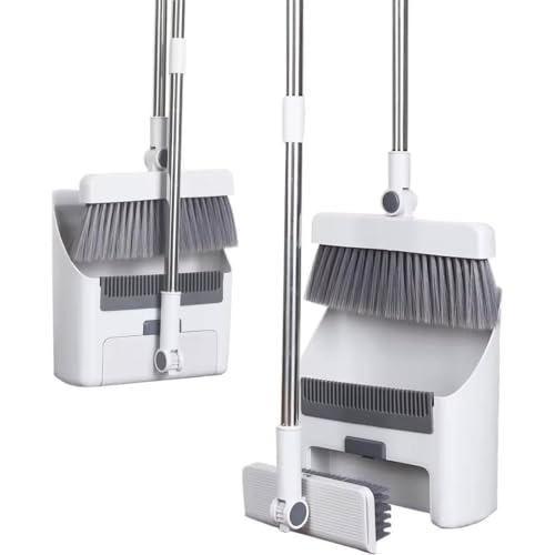 Generic - طقم مكنسة وجاروف 3 في 1 مع مقشطة، تصميم قائم مستقيم، أداة تنظيف موفرة للمساحة