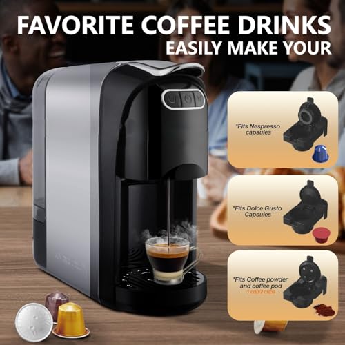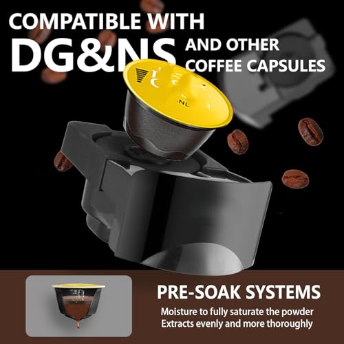 - ✔ نظام 3 في 1 لتحضير جميع أنواع القهوة تدعم كبسولات الإسبريسو، كبسولات دولتشي، بالإضافة إلى قالب مخصص للقهوة المطحونة لتحضير الإسبريسو، اللاتيه، الكابتشينو والقهوة الأمريكية.