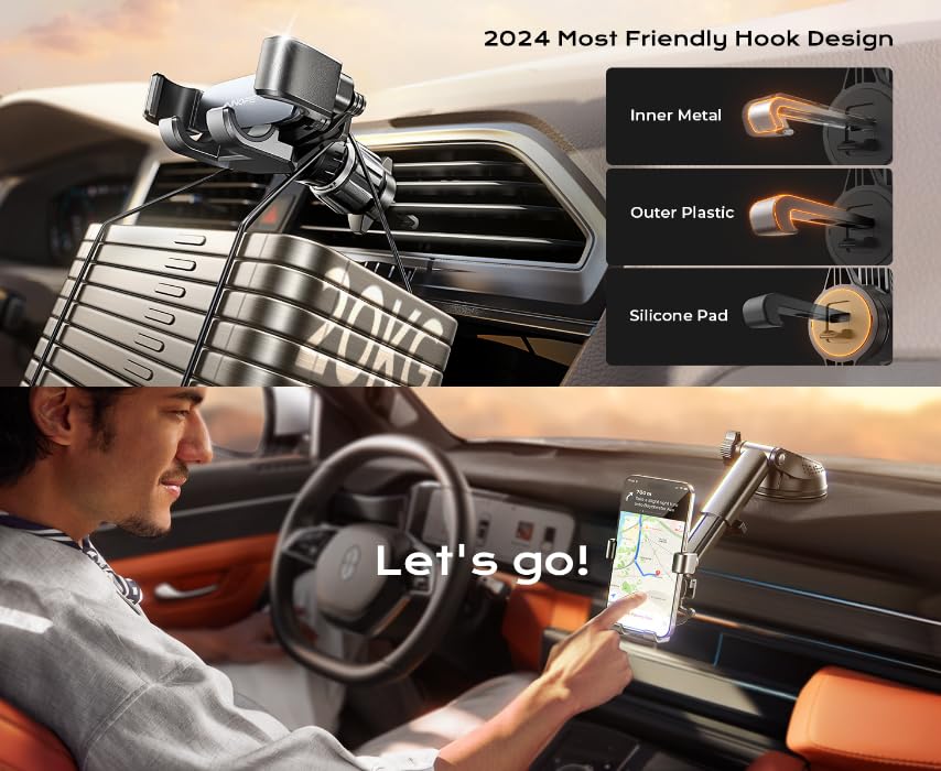 - تصميم خطاف صديق 2024: يتميز بخطاف معدني داخلي مع طبقة بلاستيكية خارجية ووسادة سيليكون لحماية فتحات التهوية من الخدوش والأضرار